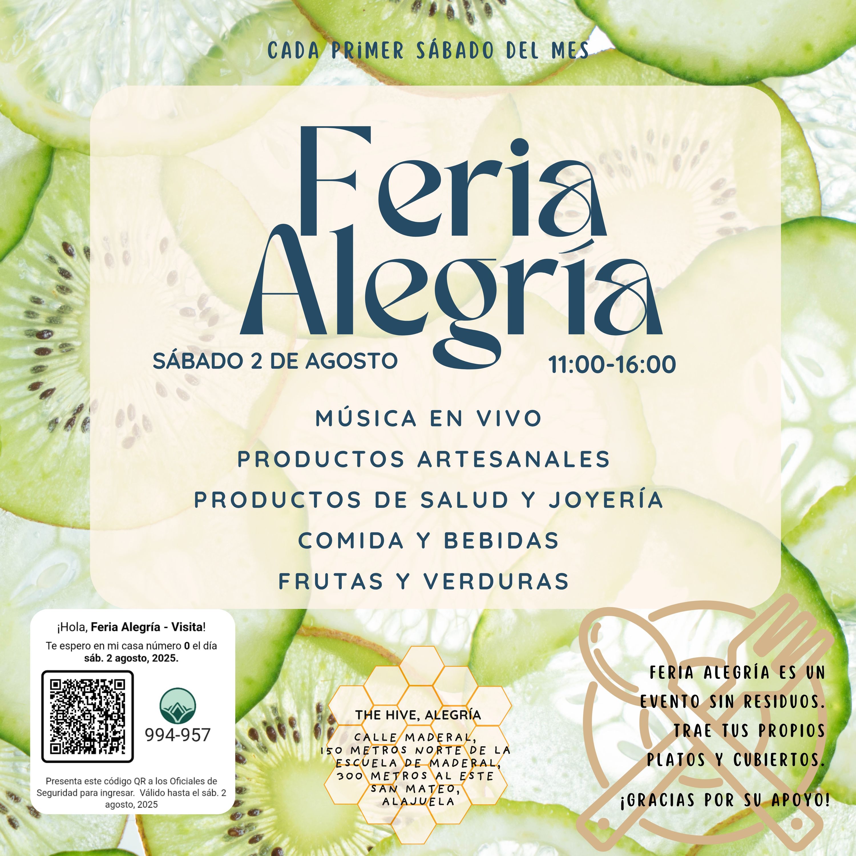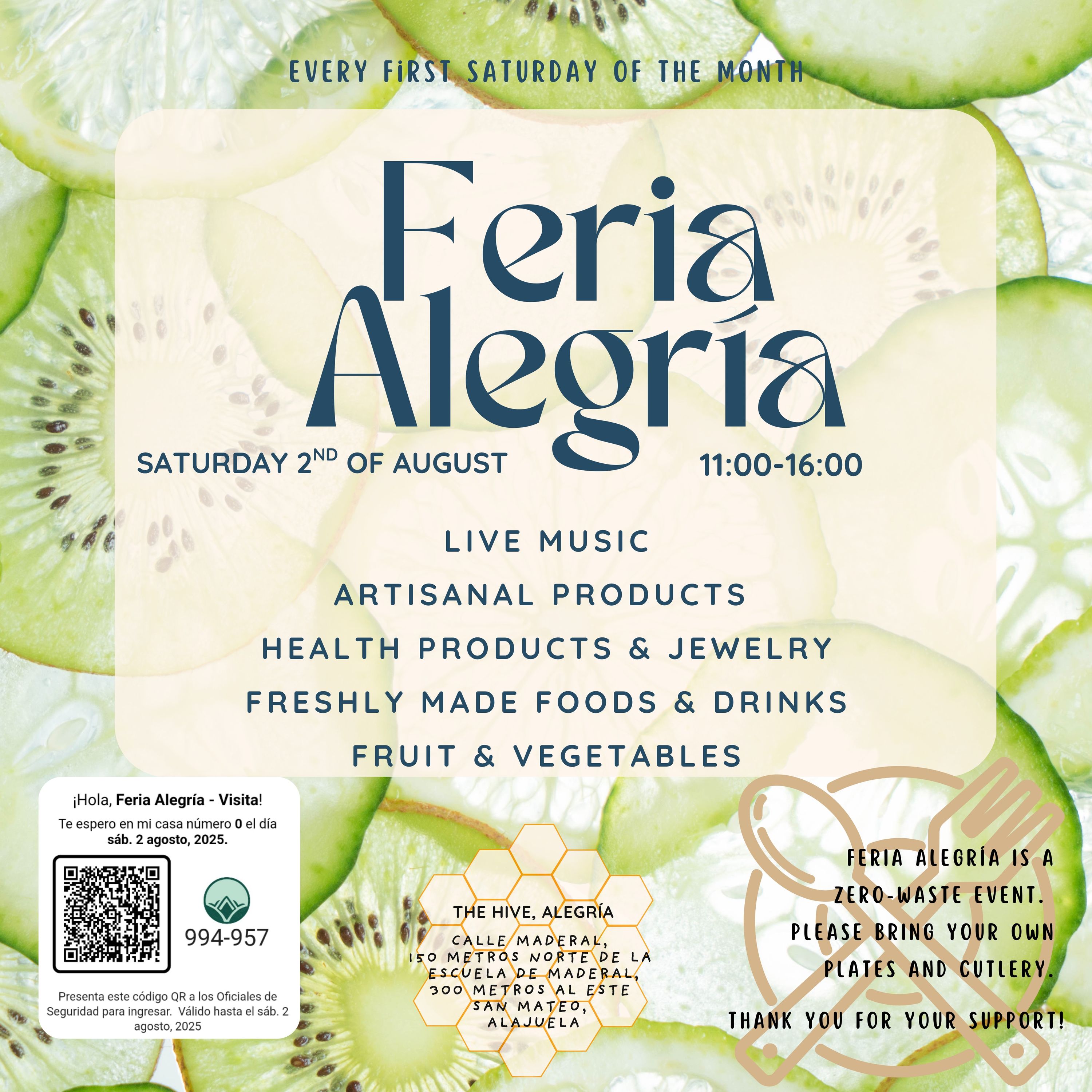 Join us at the Alegría Feria, where community members come together to share and sell locally made, organic, and handcrafted goods. Explore a variety of fresh produce, artisanal products, delicious meals, and live entertainment!